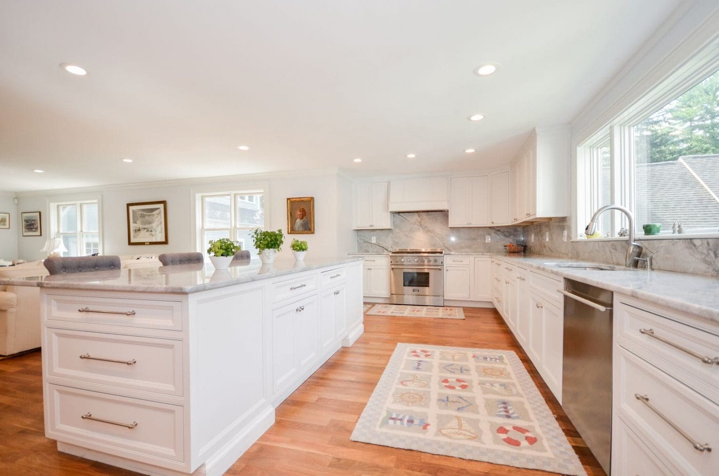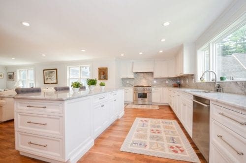 This circa 1885 Marion Village Gambrel was completely renovated and reconfigured in 2016, blending antique charm with modern day comforts. A large great room is attached to a bright gourmet kitchen with high-end appliances and an oversized center island, and adjacent to the dining room, living room and entry foyer. The second floor has 4 bedrooms each with their own marble en suites and custom closets. A farmers porch overlooks the .34 acre professionally landscaped grounds. Detached 2 car garage with a fully finished second floor, including a full bathroom, making this the perfect space for guests, a home office or workout space. This home offers a casual elegance with its fine finishes: walnut floors, double moldings, custom cabinetry, and custom tile-work. Also with new HVAC system, roof, and windows, and these are just a few of the many details in this spectacular home. Located in the heart of the Marion village and within close proximity to all shops, schools and waterfront.