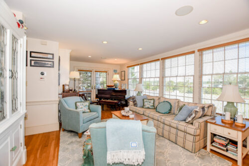 Waterfront Cape Cod-style home located near Tabor Academy and Marion village center. The 4 bedroom, 4.5 bath home is fully renovated and includes a chef’s kitchen with dining area, living room, family room, office area, cozy sun room, and mudroom/laundry area. Take in the view and action on Sippican Harbor from the large wrap-around porch. The primary suite includes a large bathroom, a work area, and a private balcony. There is a second en suite bedroom with water views and two additional bedrooms with ample closet space.