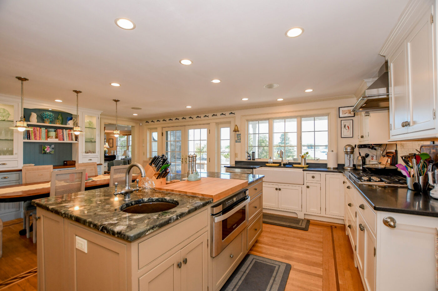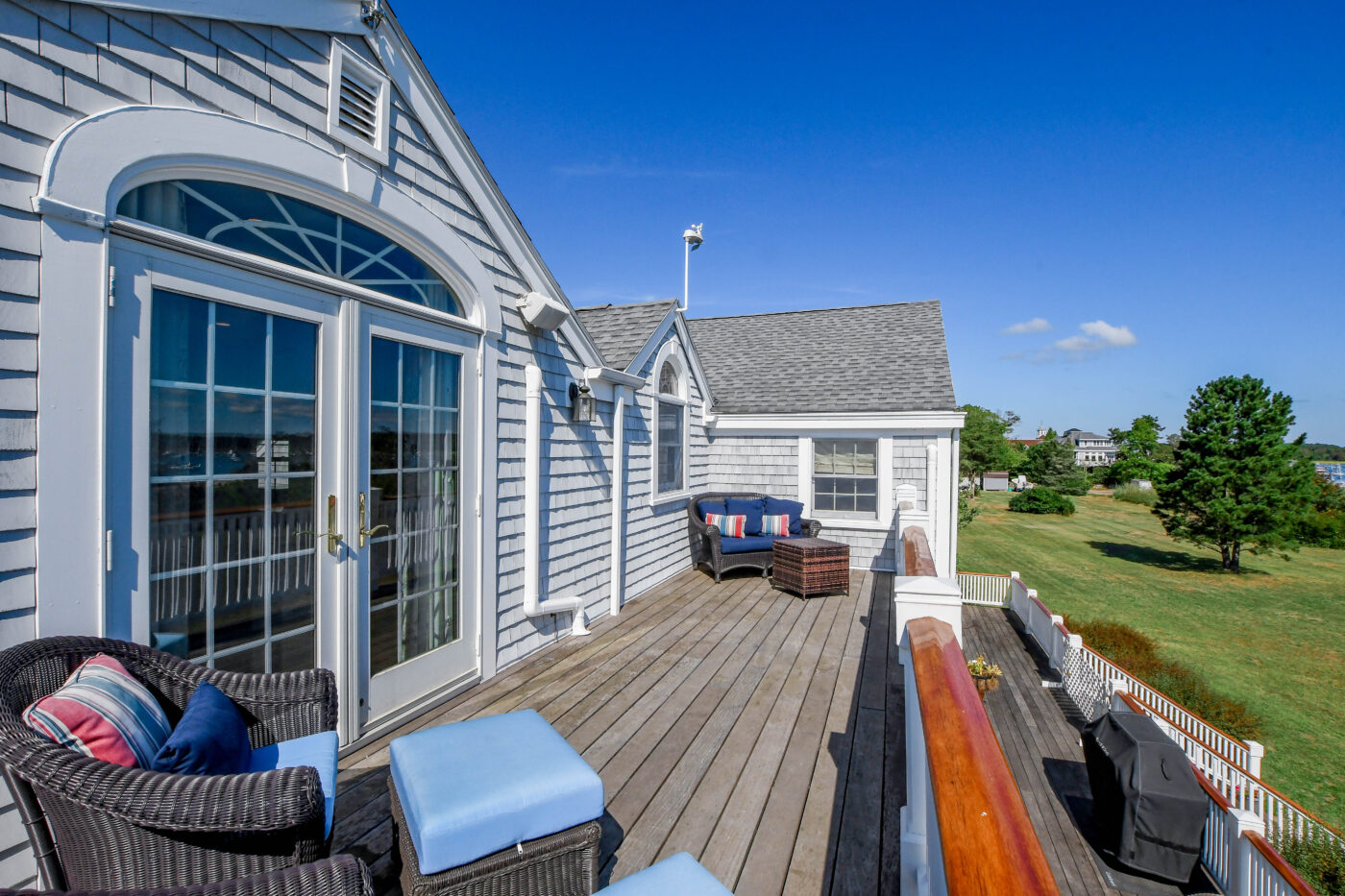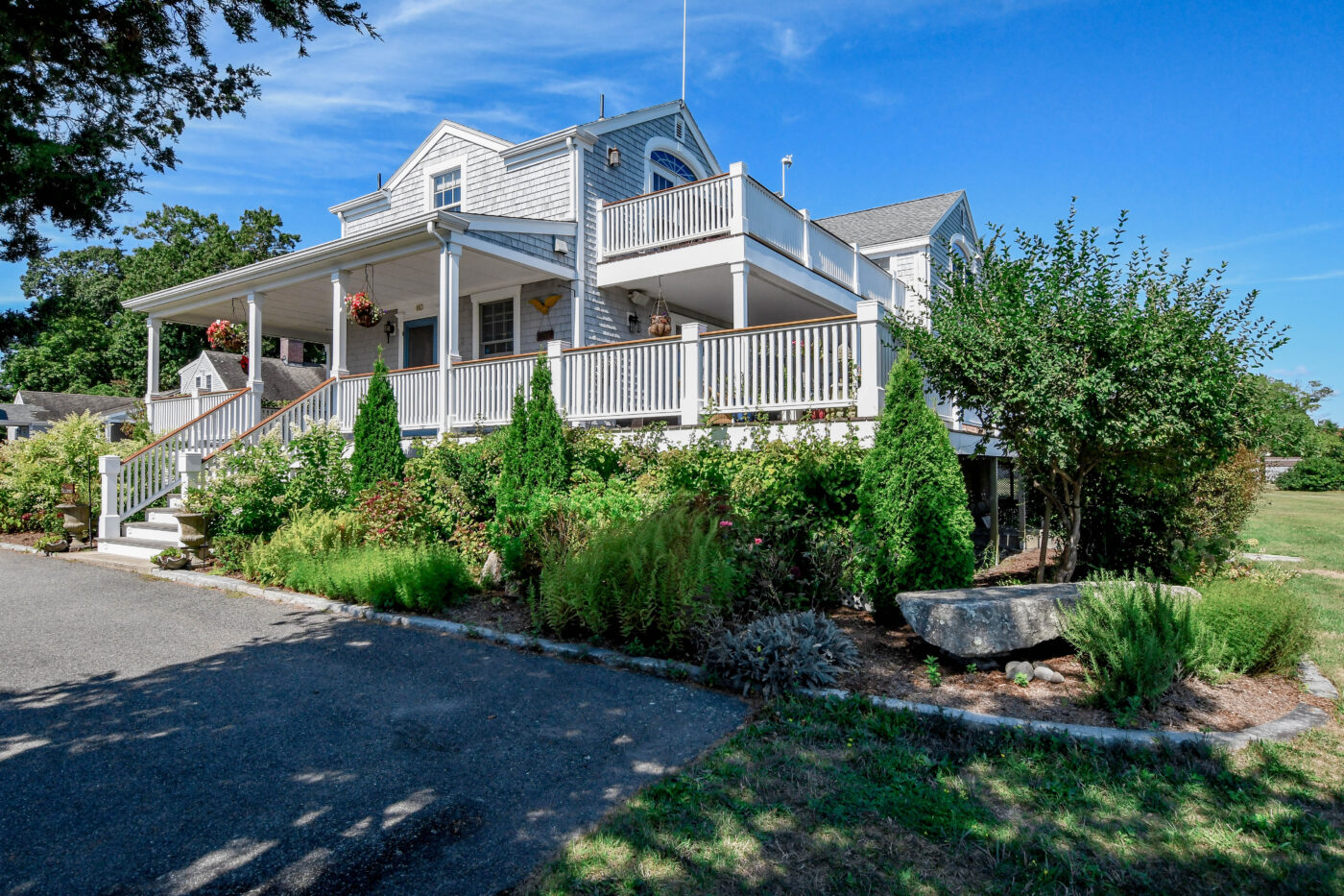 Waterfront Cape Cod-style home located near Tabor Academy and Marion village center. The 4 bedroom, 4.5 bath home is fully renovated and includes a chef’s kitchen with dining area, living room, family room, office area, cozy sun room, and mudroom/laundry area. Take in the view and action on Sippican Harbor from the large wrap-around porch. The primary suite includes a large bathroom, a work area, and a private balcony. There is a second en suite bedroom with water views and two additional bedrooms with ample closet space.