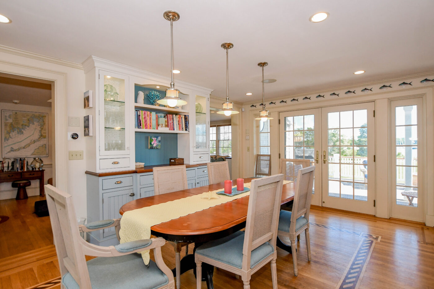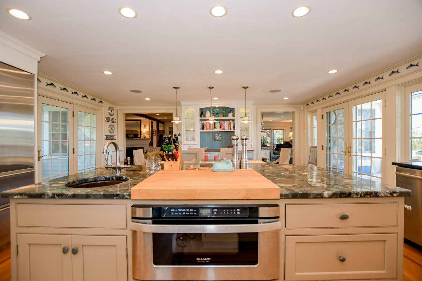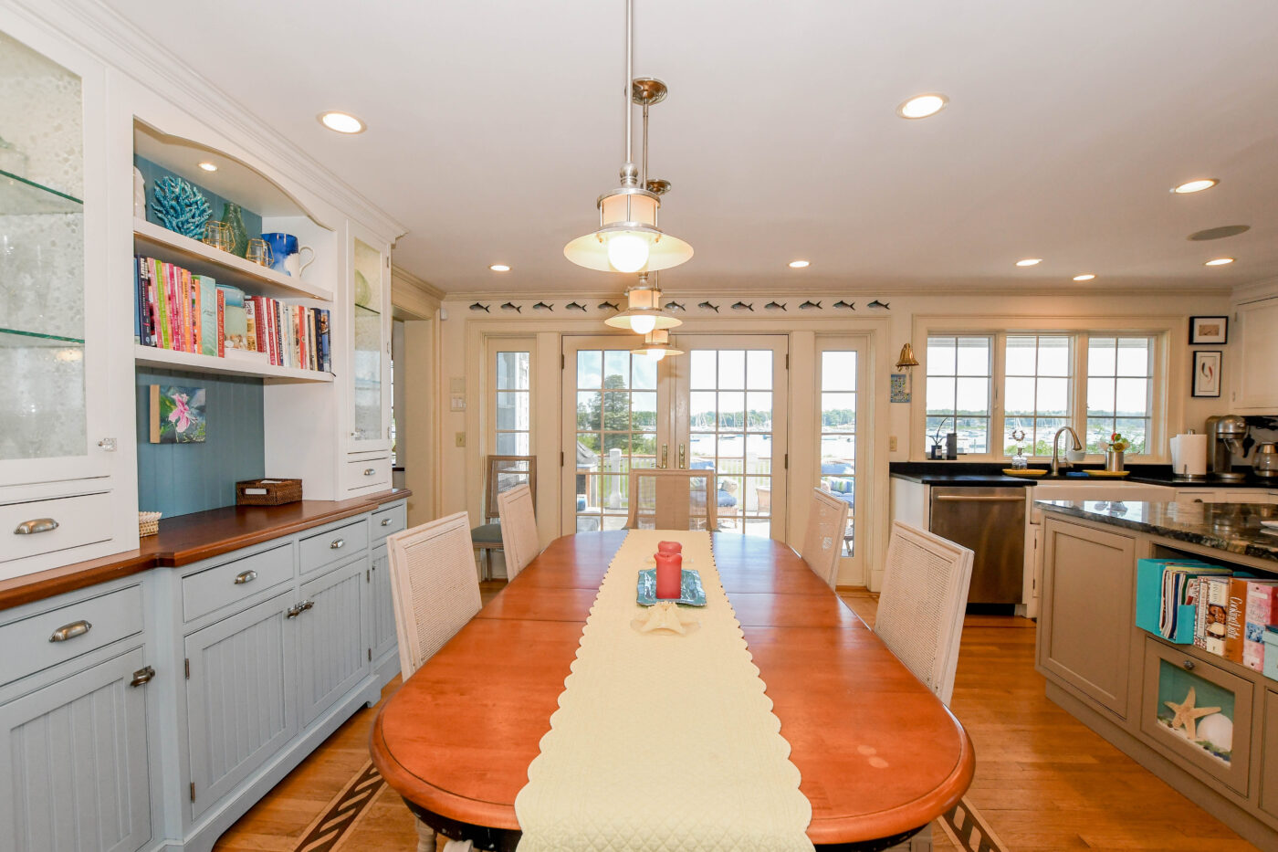 Waterfront Cape Cod-style home located near Tabor Academy and Marion village center. The 4 bedroom, 4.5 bath home is fully renovated and includes a chef’s kitchen with dining area, living room, family room, office area, cozy sun room, and mudroom/laundry area. Take in the view and action on Sippican Harbor from the large wrap-around porch. The primary suite includes a large bathroom, a work area, and a private balcony. There is a second en suite bedroom with water views and two additional bedrooms with ample closet space.